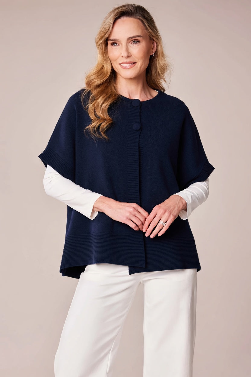 Decollage Navy Sleeveless Cardigan